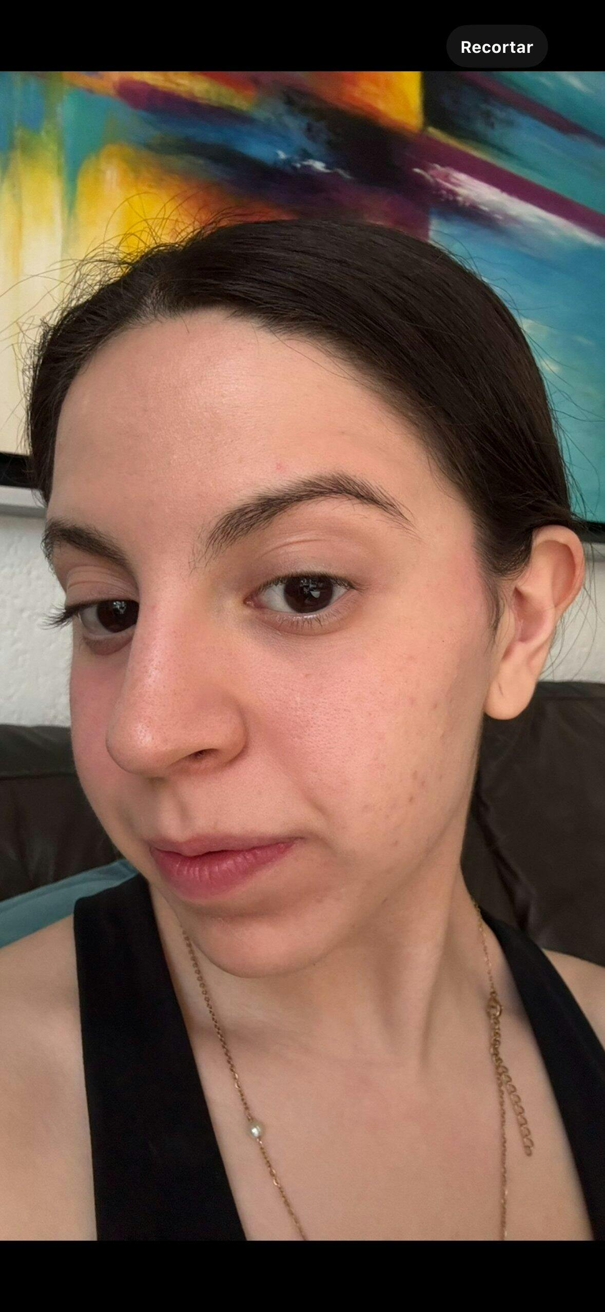 mi piel es otra! literalmente comencé hace un mes, todas las mañanas aplico mi serum con bloqueador y para sellar e hidratar mi bruma, no saben lo rico que se siente mi piel lo hidratada y uniforme ( la primer foto es mi antes y la segunda mi despues)